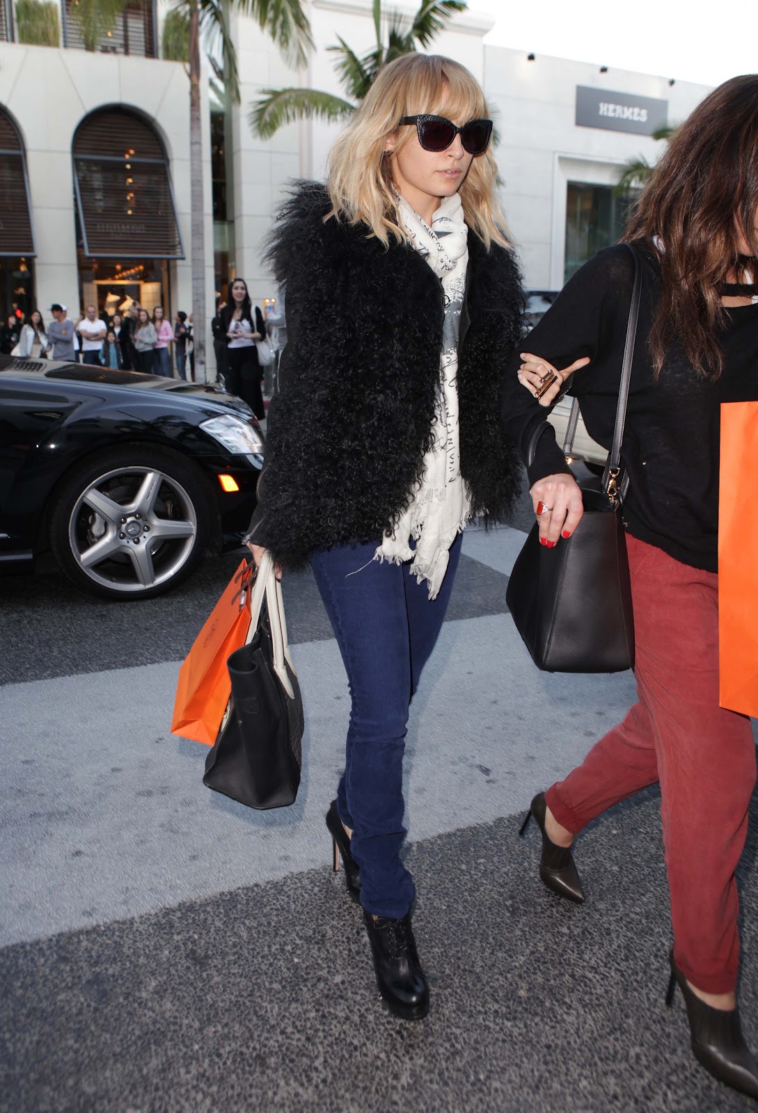 Out shopping in Beverly Hills, Nicole donned her indigo jeans with a furry Helmut Lang jacket.